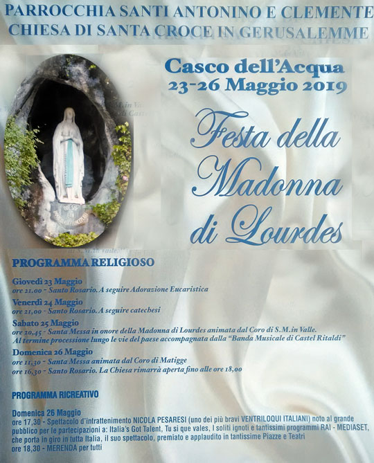 ore 20,45 - S.Messa in onore della Madonna di Lourdes animata dal Coro di S.