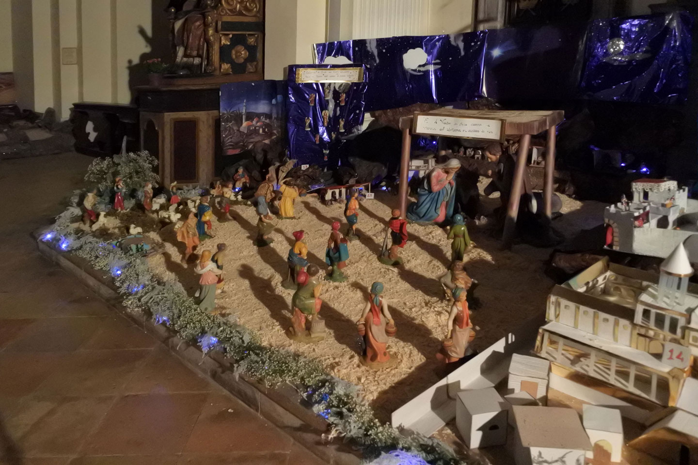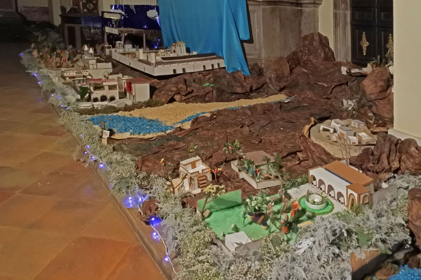 Presepe storico di ambientazione palestinese in un locale tra