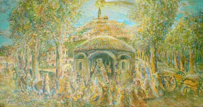 ![]() Sacra Famiglia templare, olio spatolato su cartone |