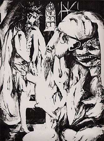 Cristo e Caifa Olio monocromo su tela Ciclo pittorico: Via crucis